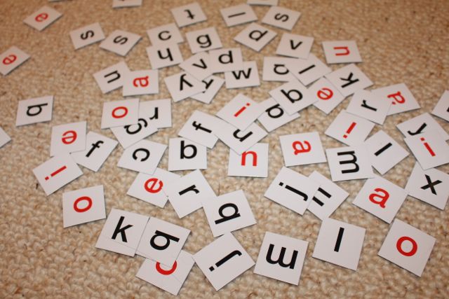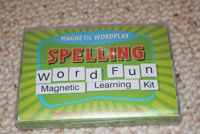 A while back I bought a set of magnetic letters and words from the school bookclub. Using them quickly became one of L’s favourite spelling activities. We could put them on the magnetic board, or on the fridge, but we have fun just laying the letter tiles out on the floor. It is a quick and easy activity to practice her spelling.