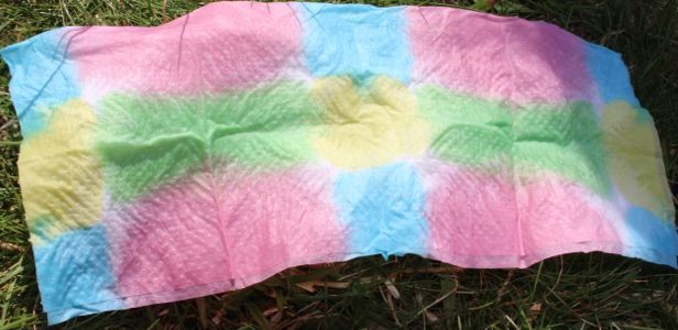 We also folded the paper towel up and carefully dipped the corners into the coloured water. Once each corner was done, we unfolded the paper towel to reveal the neat patterns it had formed.