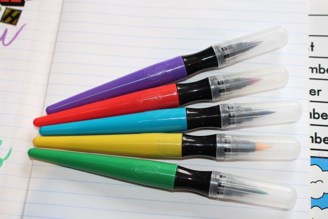 3) Paint Pens. L found these drip-free paint pens by Crayola in Officeworks. The paint is contained in the barrel of the pen, and is applied by the brush tip, just like writing with a pencil. No mess, and easy to use.