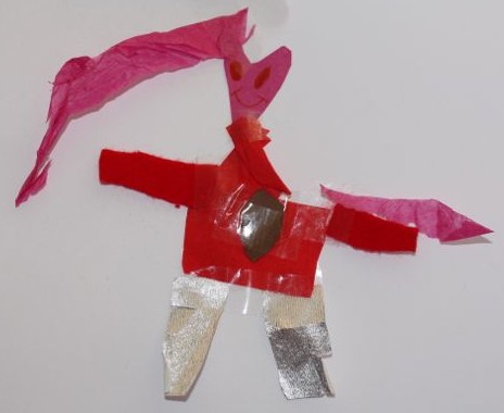 L also did some collage art, but she made a picture of a robot on hers. And because A was hogging the glue, she used sticky tape to affix her picture.