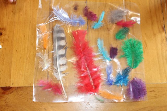 Some window art made with feathers.