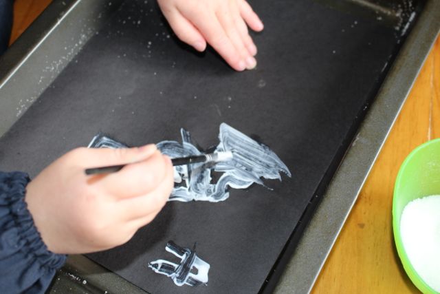 I had initially planned to use salt for this activity, but alas, we had run out of table salt