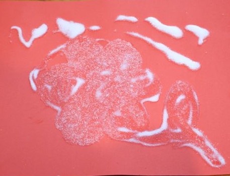 A also tried using the glue straight out of the bottle, but it was really too thick. The sugar started to dissolve where the glue was thick so it wasn’t as easy to see. However, when it dried it did create a 3D picture, which was pretty neat.