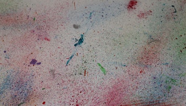 The screen and toothbrush produced a much finer droplet pattern than the paint bellows, but both methods created pleasing paintings.