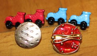 The roller skate buttons had reasonably large loops on the back, so it was easy to pass the folded hairband through the loop. The other buttons had smaller loops, so I had to find some little bands, and it was more fiddly to get the band through.