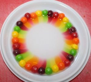 Static electricity is caused by friction between two surfaces. Some surfaces are better at building and maintaining a charge than others. We used a balloon for our experiments because it is easy to create the charge and to witness its effects. The friction causes the surface to gain a charge (negative or positive), and when another surface has the opposite charge, they become attracted. Static electricity can cause a ‘zap’ if you touch someone or something after building up some static on yourself. You can find a good explanation of static electricity at Science Made Simple.
