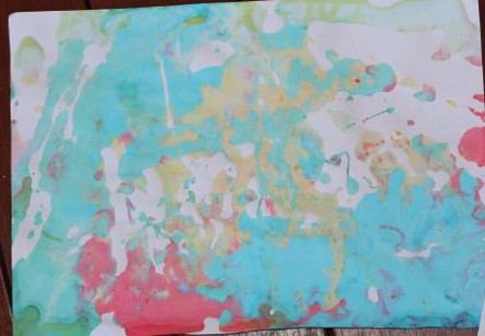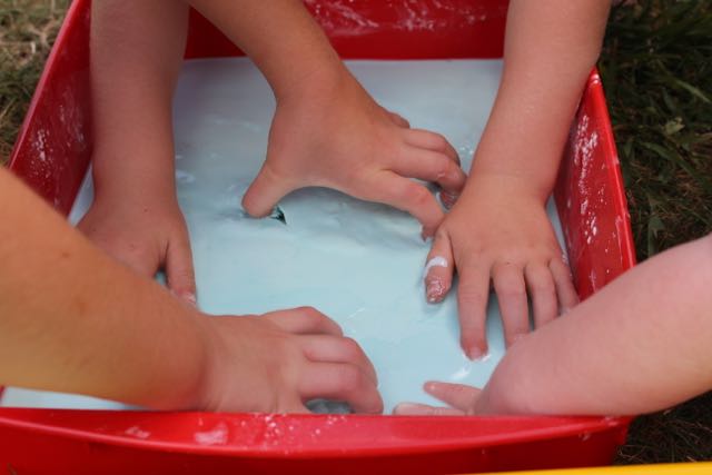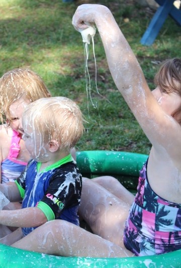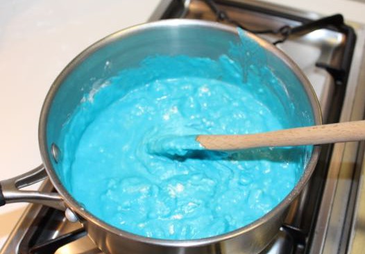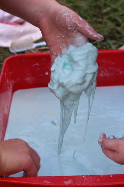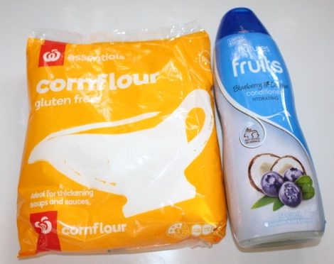 I used blueberry and coconut conditioner that we had in the bathroom (technically it was L’s, but it was the nicest smelling stuff we had at the time…) Oh, and it was a cheap conditioner despite the lovely smell, so it kept the cost of our little experiment down.