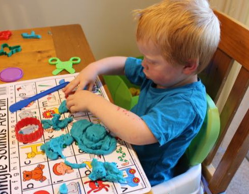 Both boys enjoyed the sensory experience, of the touch and smell of the dough. They squeezed it, and poked it, rolled it in their hands and stretched it. I did have to stop T2 from playing with it after a while though because he kept eating it (despite many warnings and admonishments, and what I can only imagine was a terrible taste!) T1 continued to play with the dough for quite a while, fascinated at the way it felt and moved in his hands.