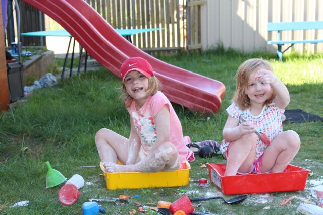 L made her tub into a Chinese Restaurant, while A opened a pet store in her tub. A offered snakes, frogs, lizards, bugs, a polar bear and a camel for sale. She charged Big L $28 for a couple of lizards. L made us entrees of spring rolls and prawn crackers, mains of rainbow pork, and dessert of deep fried ice cream. She used the sieve to deep fry the ice cream, and some containers became the stove where she cooked the pork.