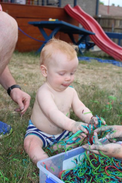 One of the sensory play items they sometimes have out is a huge tub of rainbow coloured rice. A loves it. A few times we’ve been, that is the only thing she has played with the entire time. She loves to run her fingers through it, pour it into different containers, spoon it around, put play animals in it, tell the other children it is hers and they can’t play with it…