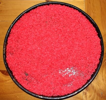 I have stored the rice in an airtight container for more play later, and the kids have asked that I make some more colours to add to the tub for next time.