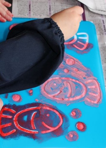 We have actually done a lot of spelling on the trampoline; he says one letter of the word for every jump he does. And we have done lots using other activities, but when I found some tubs of coloured sand, I knew we needed to try making some sand art!