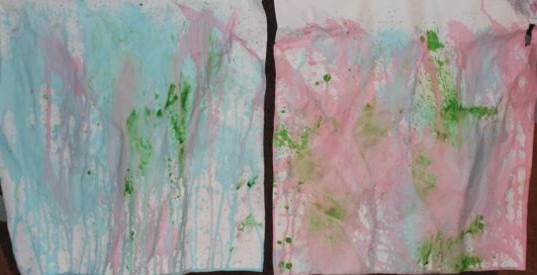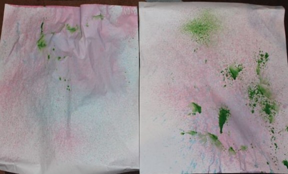 I had a little trouble getting the right consistency for the paint, at first some of it was too watery, and we could barely see the colour on the paper, then one of them was so thick, it wouldn’t suck up the tube. After a bit of trial and error, we got three spray bottles working just right. We also found that the darker paint colours, such as blue and green worked much better than when we tried lighter colours like yellow and orange.