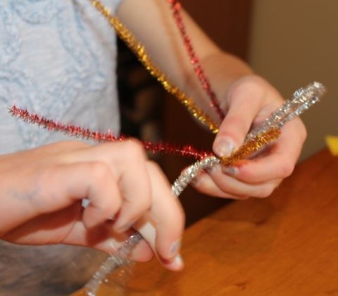 One of the things my kids like about doing craft is that so many craft activities require the use of glue, and this was no exception. Out comes the craft glue, and L was all ready to start gluing on the decorations straight away. I convinced her to put down the glue and lay out the decorations where she wanted them first, to see what it would look like before actually attaching them. Having a plan of action is normally a good thing when crafting 🙂