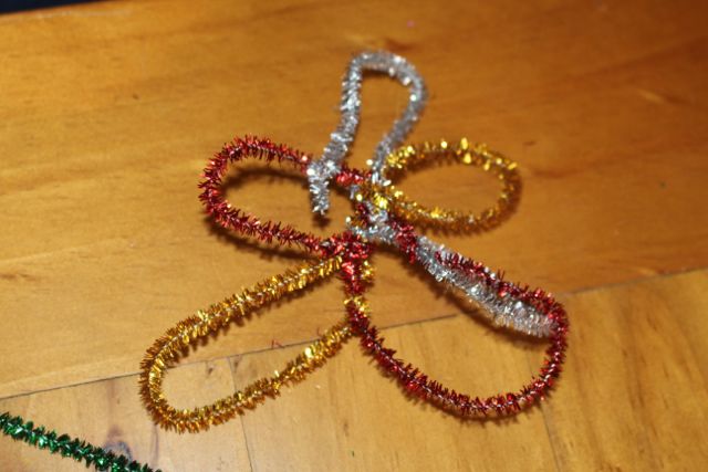 The felt pieces had little holes around the edges for the plastic needle to pass through. L asked me to tie a knot in the yarn at the start, and then she stitched around the edges of the snowman, making sure she didn’t miss any of the holes, and then I tied it off at the end. She got the yarn tangled a couple of times, but it was easy enough to undo and then continue stitching.