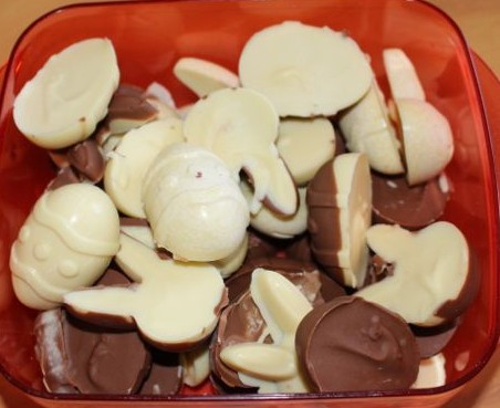 I wanted to try making some Easter shaped chocolates this year with the kids, as I thought it would be fun. We were given a number of plastic chocolate moulds by a good friend, and my mother also gave us a silicone chocolate mould to try. We started with the silicone mould.