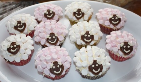 The final layer of cupcakes was to be the heart of the island, with green butter cream and green coconut for the grass. Again, we applied the butter cream generously to help secure the plastic ferns we added for foliage. These cupcakes were the pinnacle of the cupcake stand. The cupcake on the very top was the centre of the island, which sloped down to the sea at the bottom. I think it looked quite effective on the table!