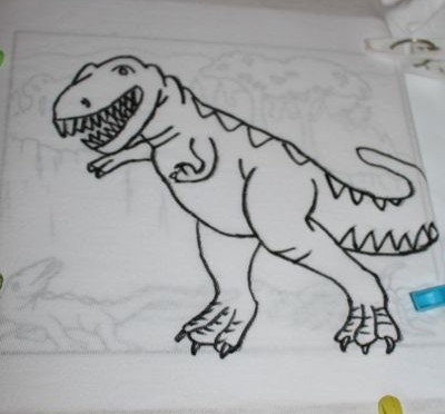 The roughened texture of the butter cream on the body of the stegosaurus.