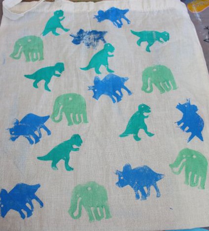 The younger kids had some trouble keeping the plastic yarn needle on the yarn, so I tied the needle on for them. This allowed them to focus on the threading without the frustration of needing to re-thread the needle all the time. Once they were finished, we just cut the needle off and tied the ends together. The boys (who are only two) did very well with this activity, carefully threading their flowers and straws on. This is a great activity for fine motor skills, hand-eye coordination and concentration. And it makes some lovely, bright leis for dressing up with!