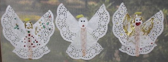 We cut pieces of yarn roughly a metre long, and tied a big knot in one end to prevent the flowers from slipping off. The kids alternated flowers and straws until they had filled their yarn up. I helped them tie the ends together to form a loop, and the leis were ready to wear.