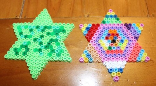 When L was a preschooler her teacher noticed that while she was advanced in many areas, her fine motor skills could use some improvement. The school gave me some ideas for things to practice with her to improve her fine motor skills to help improve her writing. One of their suggestions was melty beads, which I found under the brand name Hama Beads in Lincraft. These are little plastic ring-like beads that are placed on a peg board in the desired design and then the top is ironed to melt the beads together (with baking paper between the beads and the iron face to prevent the beads melting onto the iron!). Then once the beads cool down, the design can be removed from the peg board and displayed or used in whatever way one wishes. These melty beads were a huge hit with L. We have done many designs over the past couple of years, and it never seems to lose its appeal. Now A is also very interested in making designs with the melty beads.