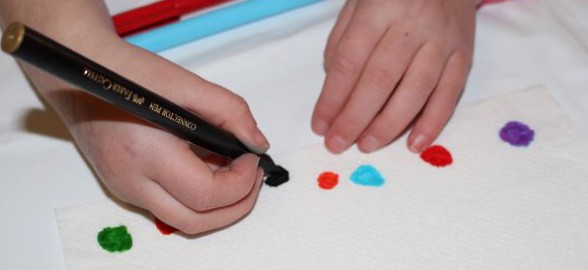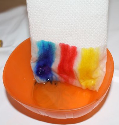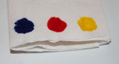 We were talking about primary colours yesterday, and I thought we could try a little experiment with paper towel.