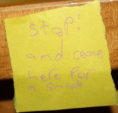 L and A made some chalk markings to show where Santa should enter our house (we don’t have a chimney). L also wrote “Santa stop here please” on our front path, just in case. She also put a number of notes around the house to show Santa where the tree is and the like.