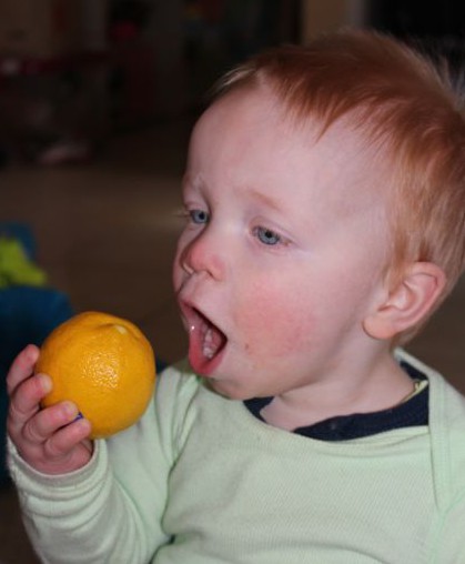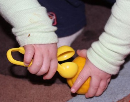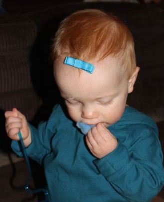 T2 had a lot of fun moving the snakes and bugs about, and using the spoons. He pretended to scoop food out of the bowls and eat it off the spoon. After a bit, T1 tossed all of our green items out of the tub and sat in the tub himself! We talked about the colour of his clothes, but he wasn’t wearing anything green! He liked repeating the word “green” after me, and finding things about the house that were also green.