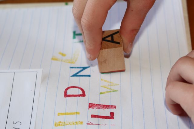 Each word or even letter could be done in different colours if desired. I think it would look good on black paper too. T1 is keen to make his next spelling list into sand art as well!